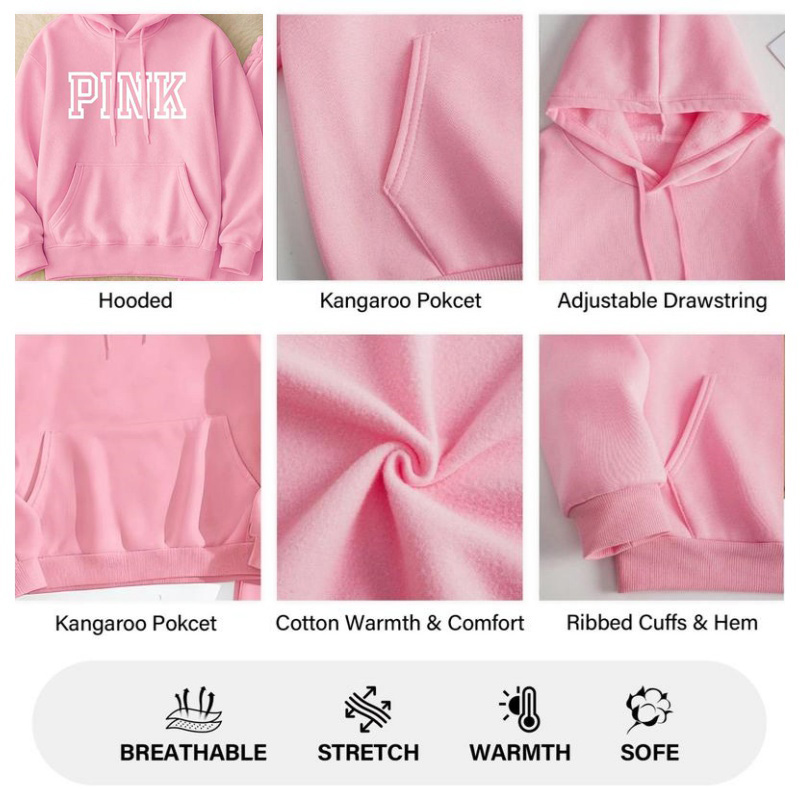 Material: 92% Cotton, 8% Nylon.The thick fleece fabric is soft and comfy, which keep you warm and free.